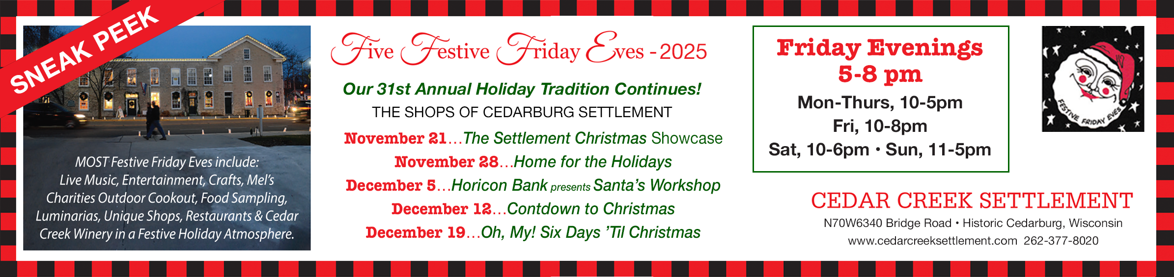 Five Festive Friday Eves (5-8 pm)